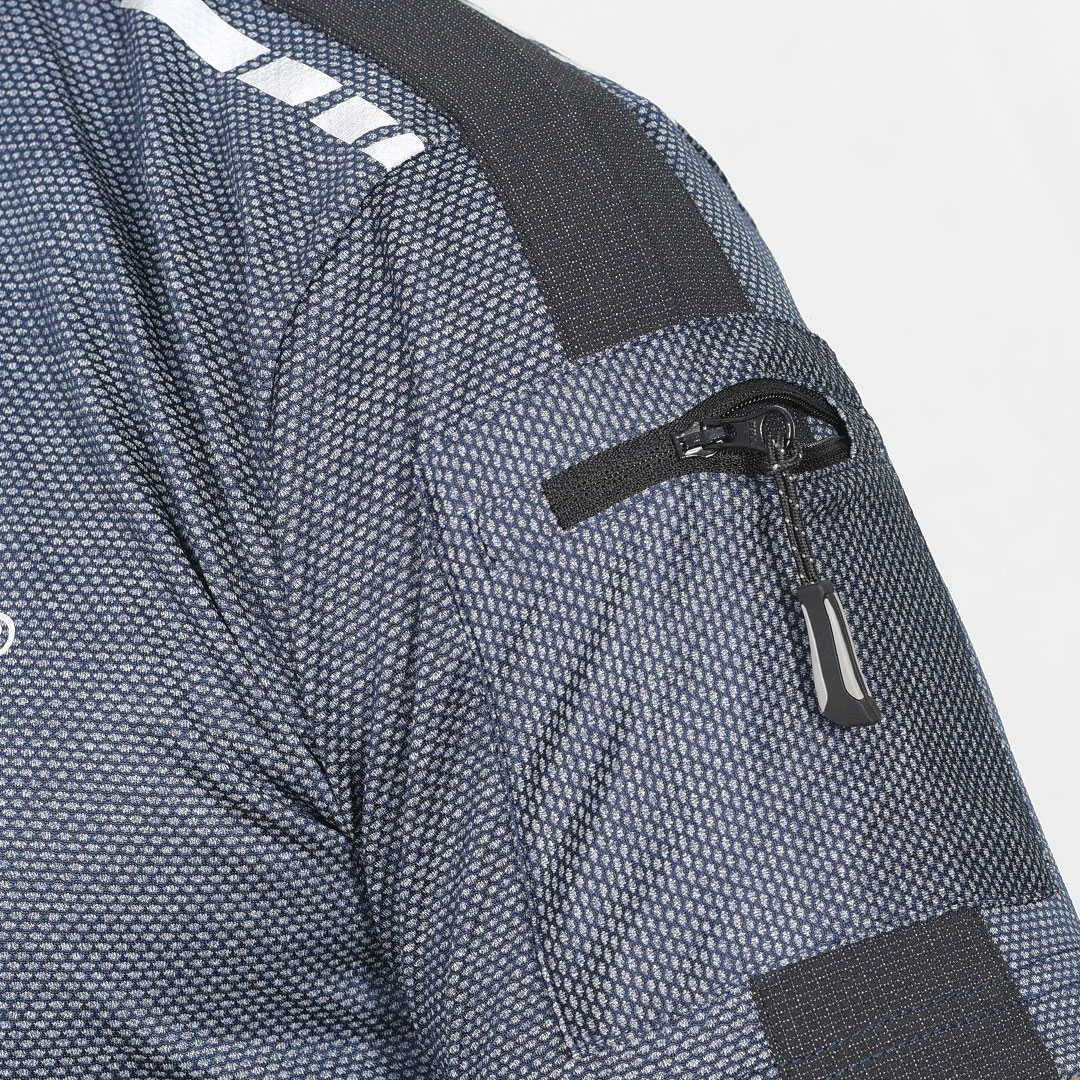 Zipper pocket on the left sleeve for storing
