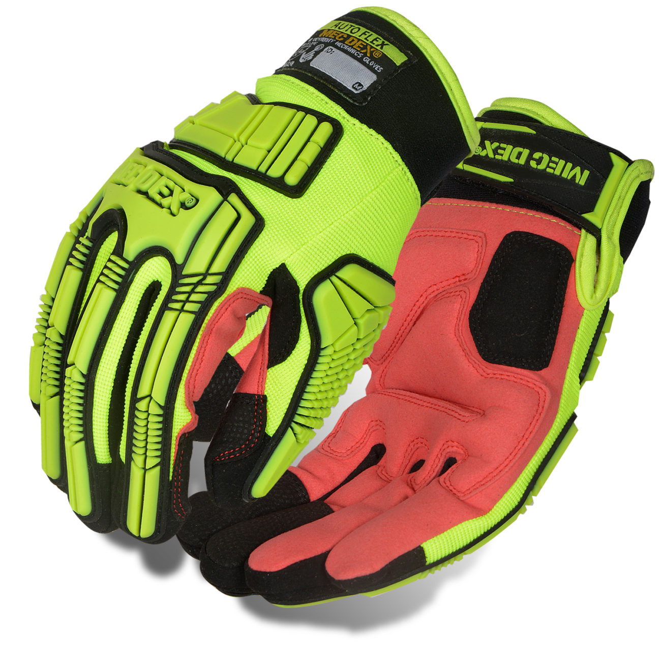 Even we talk about efficient, effective, strong and comfortable, MECDEX’s ‘AUTO FLEX’ Gloves should be your choice. Synthetic leather palm patches on synthetic leather base to reduce the abrasion and tear hazards. Back of hand is designed in hi-ergonomic way, covering knuckle with same vinyl protection and separate dorsal part for additional safety that is made with Thermo Plastic Rubber (TPR). Palm of gloves is covered with XRD Padding for comfort while working. Top of hand polyester fabric laminated stretched spandex fabric to ensure durable life of glove.