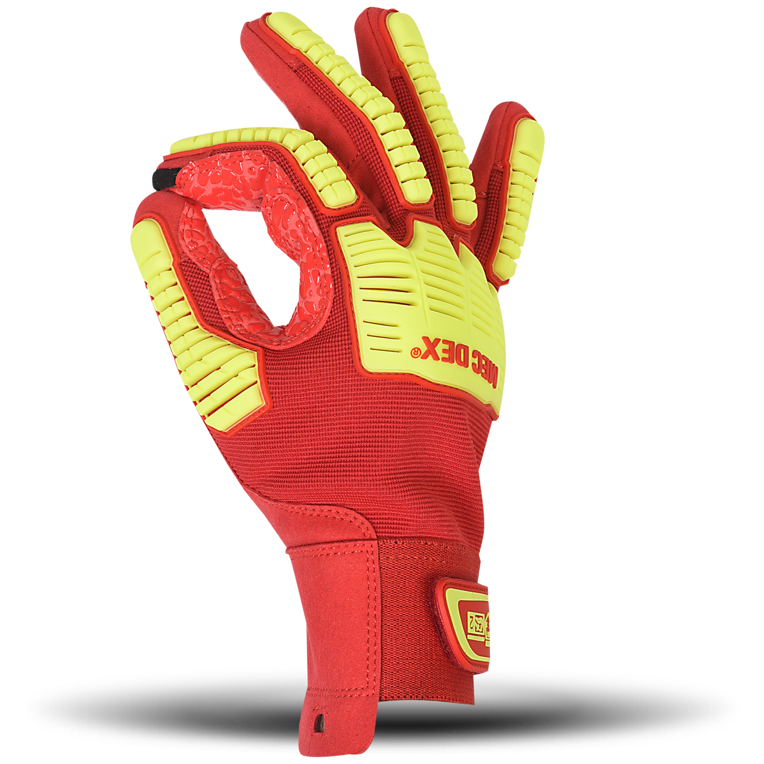Designed specifically for Oil & Gas environments, these gloves provide ANSI Impact 2 protection with stitched vinyl reinforcements covering the fingers & knuckles area for better impact safety. The silicon-printed WR synthetic leather palm, backed by Cut A4 fabric reinforcement, enhances grip and cut resistance even in slick, oily settings. Electro-conductive fingertips support touchscreen use, while an elastic wrist and carabiner hole offer convenience, security, and durability in tough field conditions.