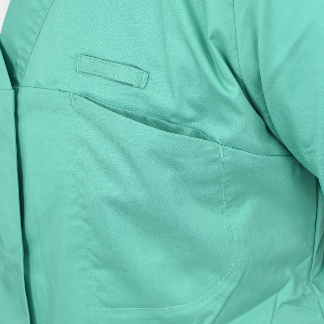 Full front closure with snap buttons for easy wear and a clean, professional appearance.