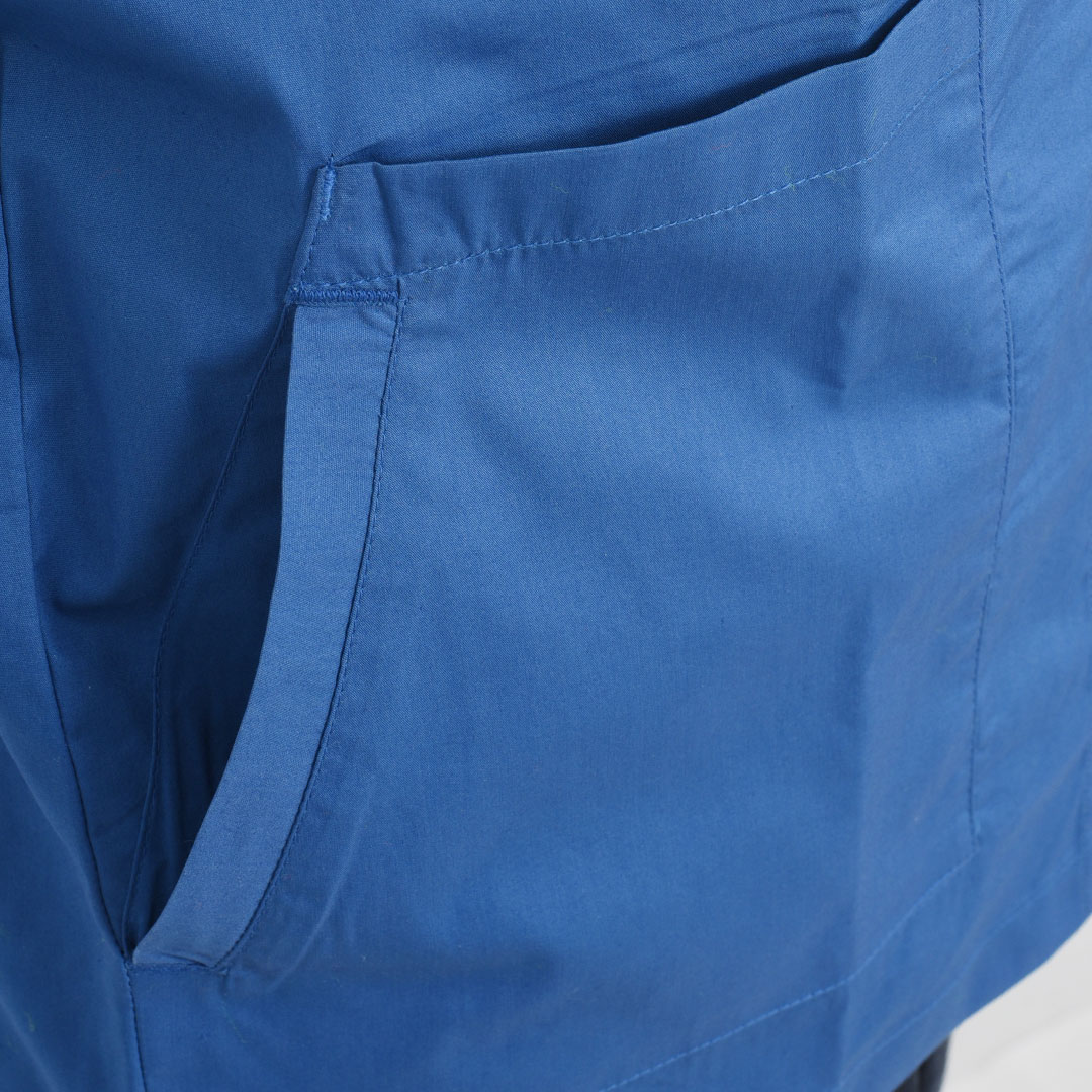 multiple functional pockets, and a classic collar design. Ideal for healthcare, laboratory, or