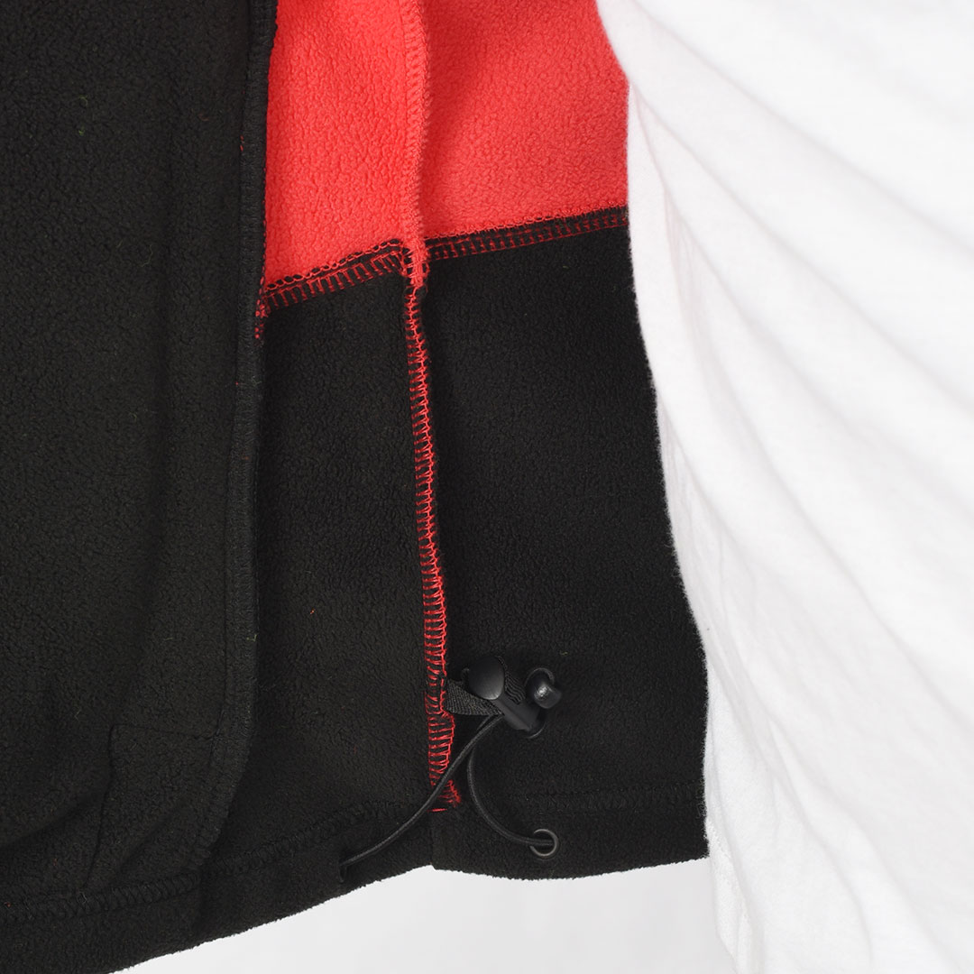 premium 280 GSM anti-pilling polar fleece, it features a two-tone contrast design, double-slider