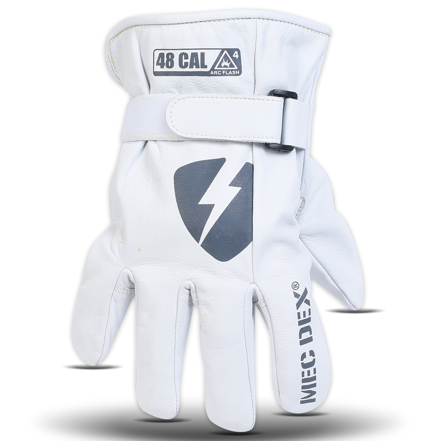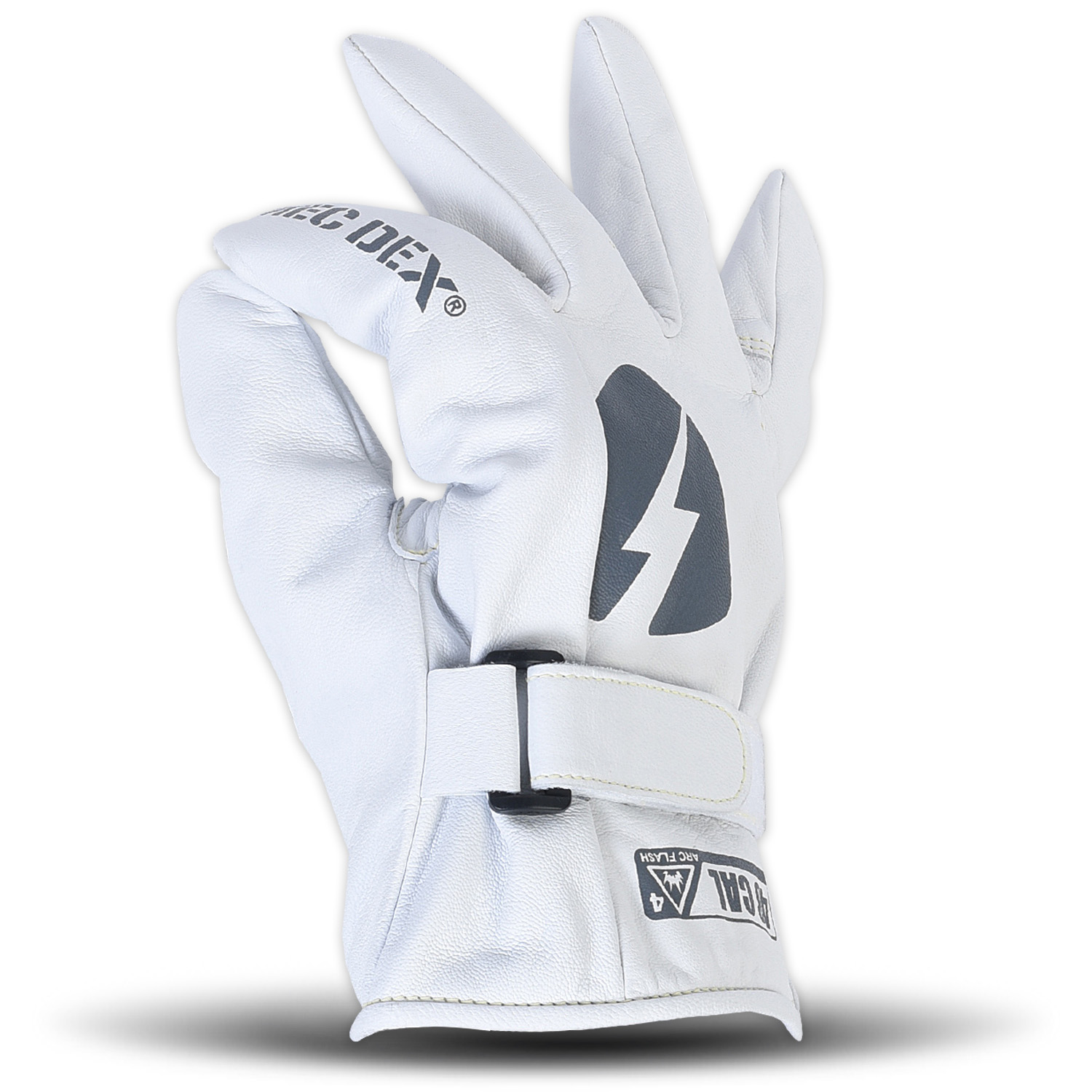 Overgloves are insulating overgloves that provide mechanical and electric arc protection. The best part is its EN CUT level 3 protected palm & and back with lining made with Kevlar® Fiber layer under the Oil & Waterproof Tan Yellow Goatskin leather along with palm patching with enhanced tensile, abrasion, and fire resistance performance along with its lightweight hand feel. This enhanced leather gloves version along FR property is suitable to handle any job that has cut, flame, and arc hazards. The back of the hand has a self-leather closure for adjusting the over gloves. “DuPont™ and Kevlar® are trademarks or registered trademarks of E.I. du Pont de Nemours and Company.”