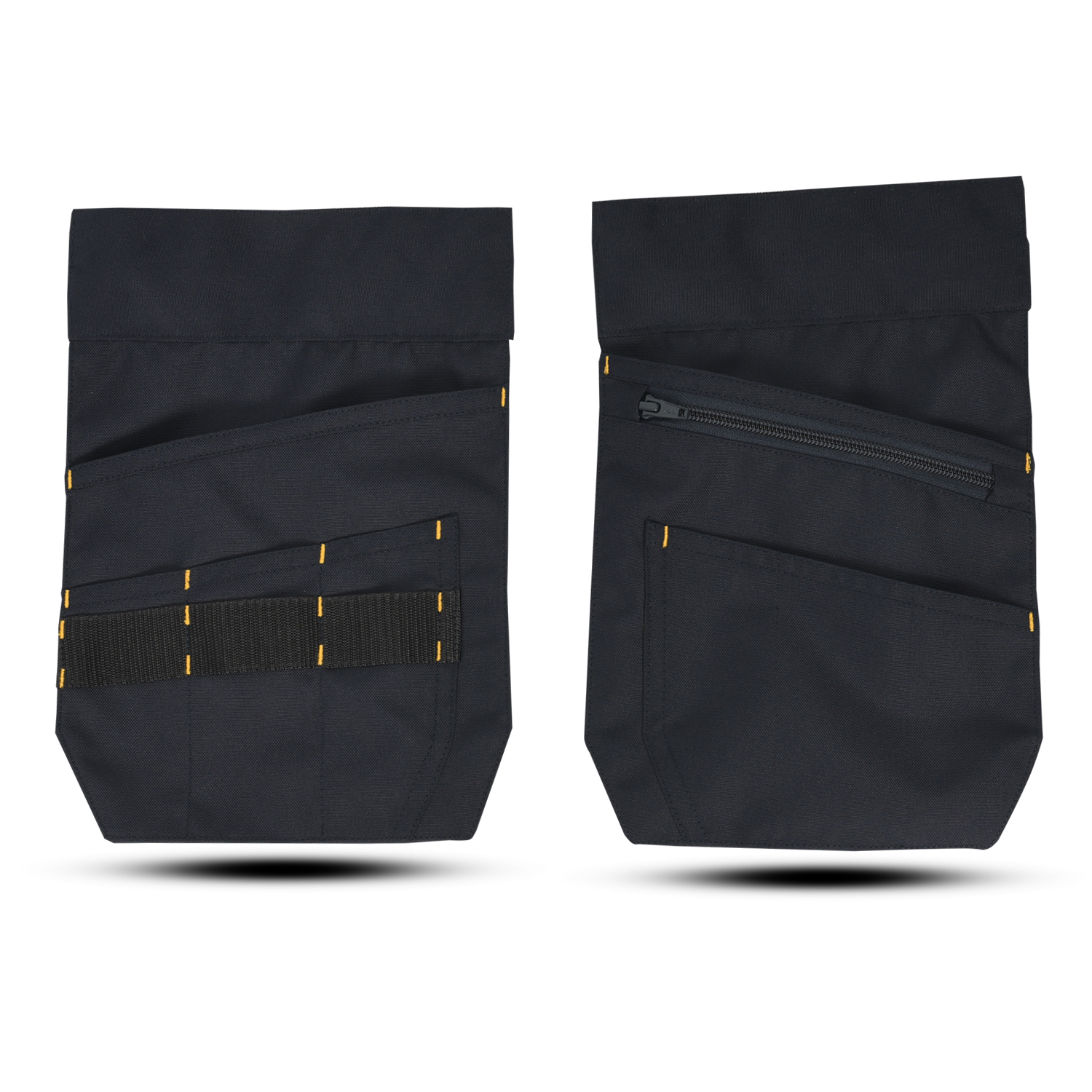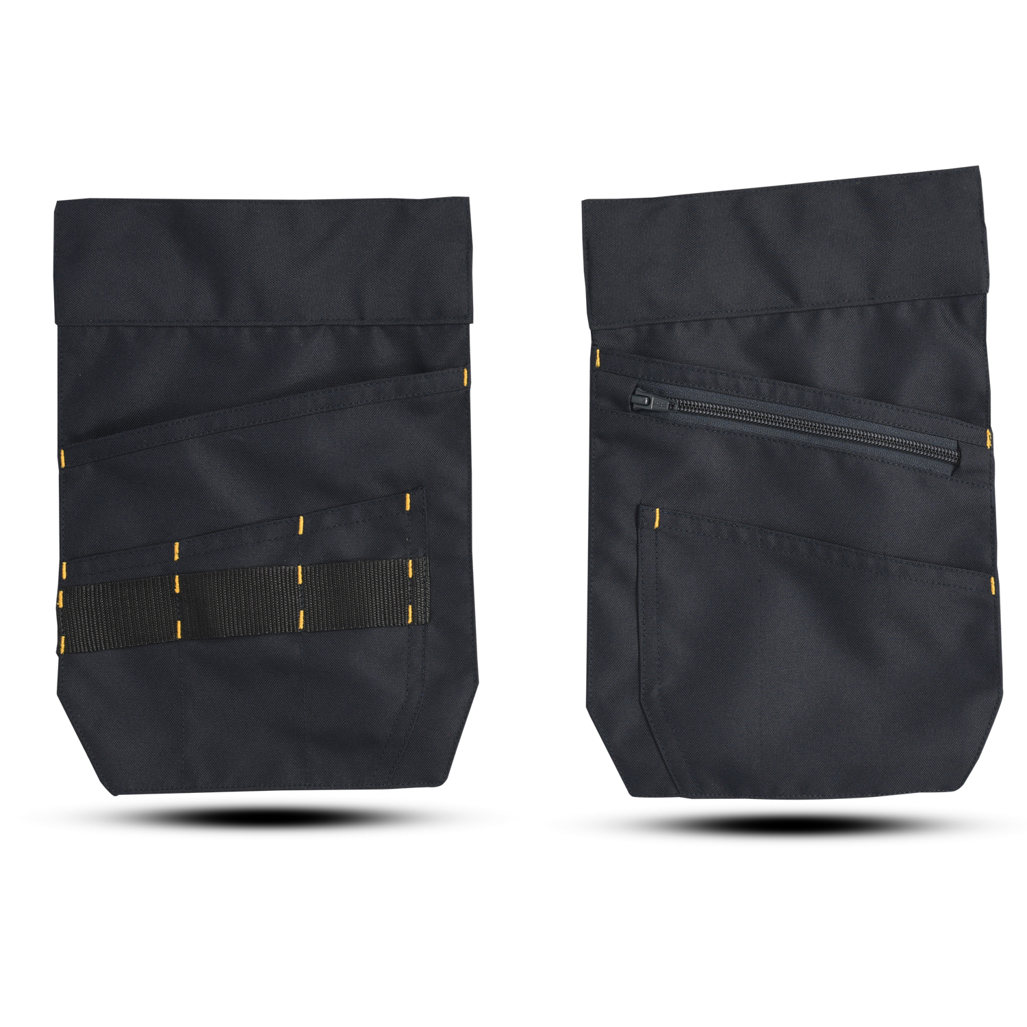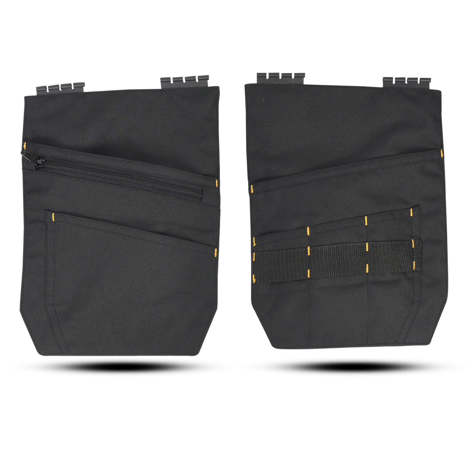 Two different options for holster pocket attachment: one with snap button and the other with plastic clasp.