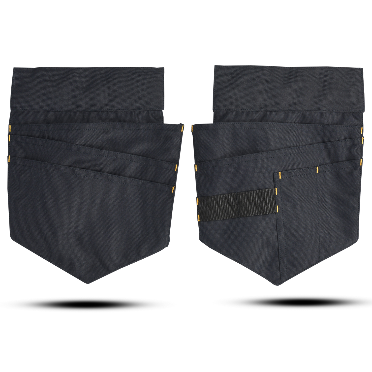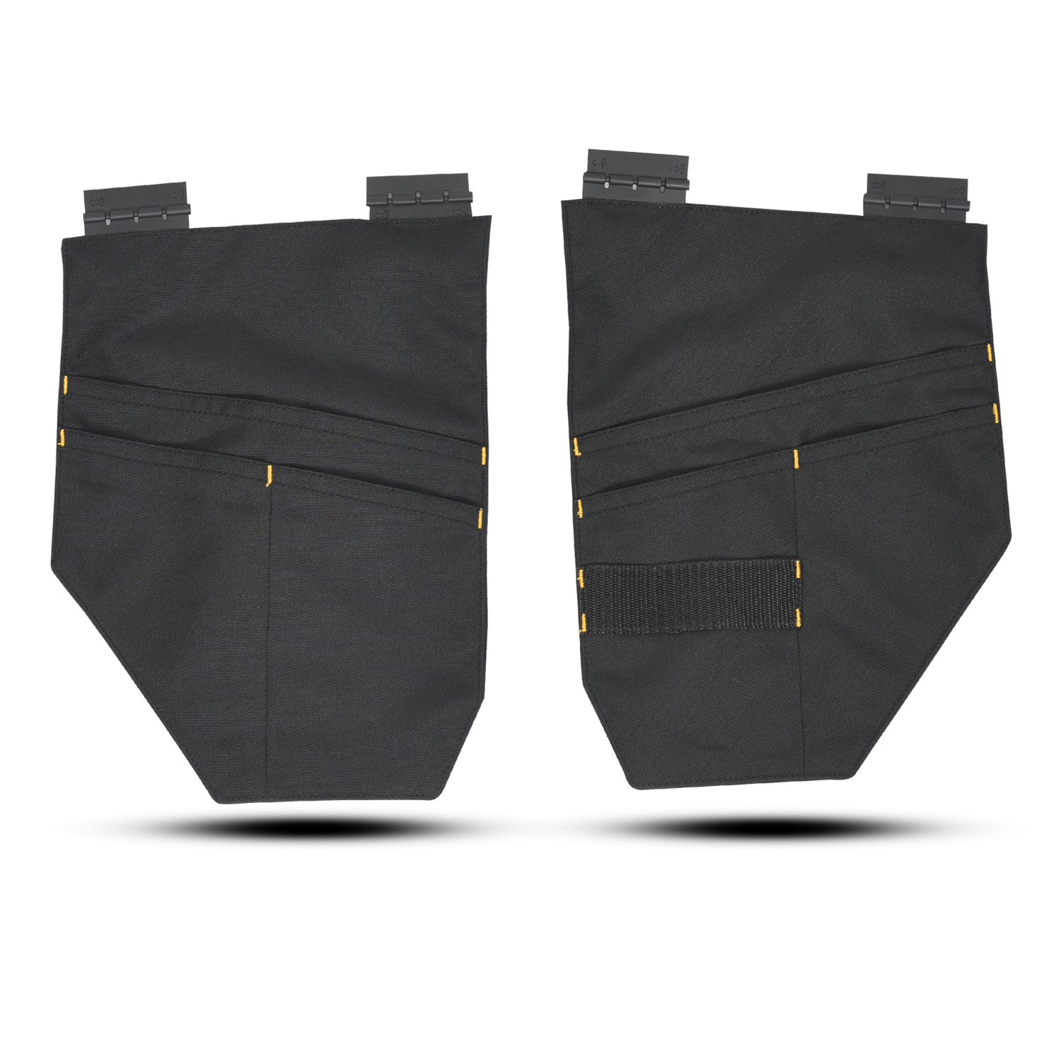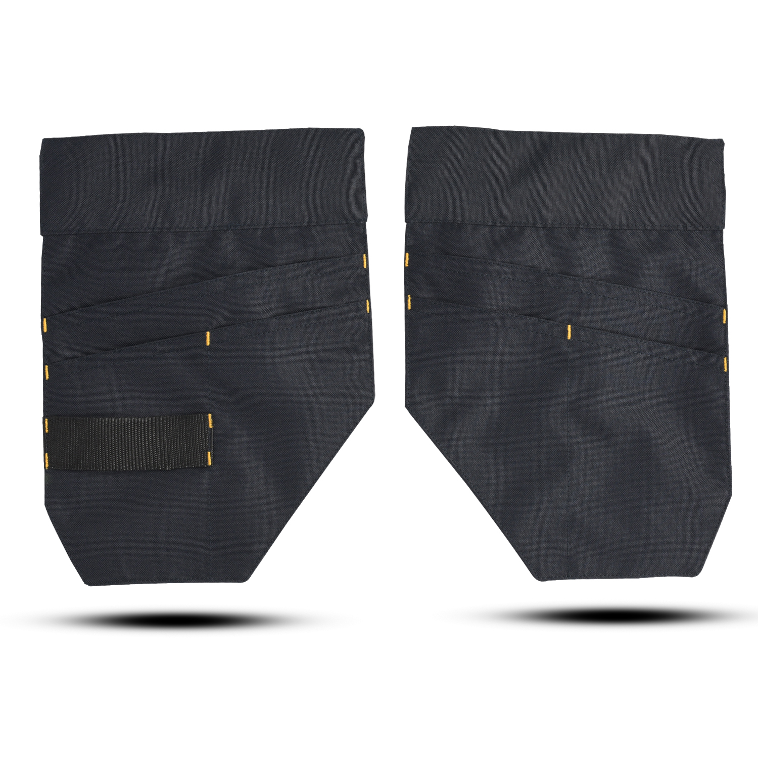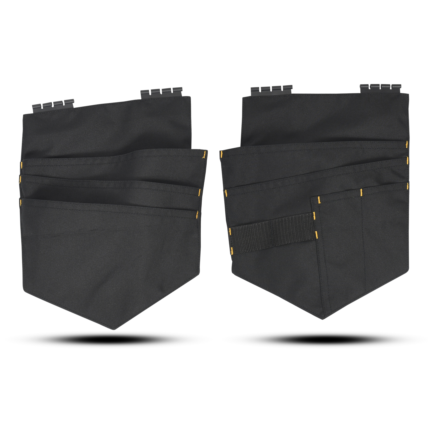 Two different options for holster pocket attachment: one with snap button and the other with plastic clasp.