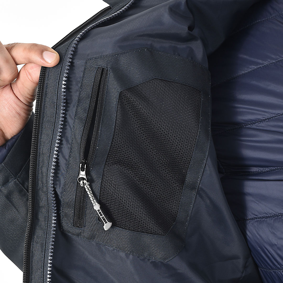 The JK-WW-1458 Men’s Anorak & Reversible Quilted Jacket combines weather resistance, thermal insulation, and modular versatility.