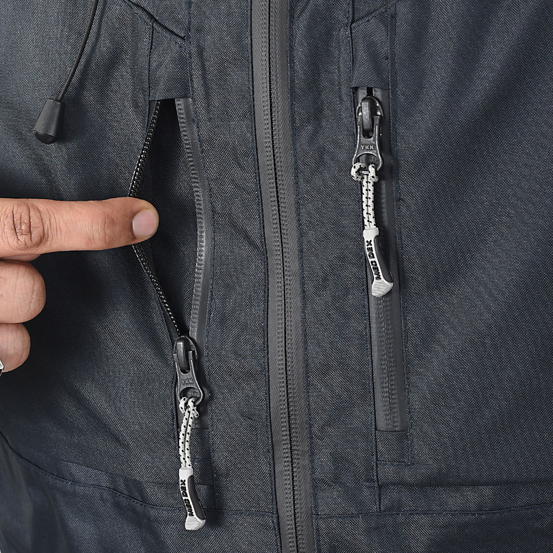 Two bottom pockets with zipper closure, functional on both sides of the jacket for practical everyday use.