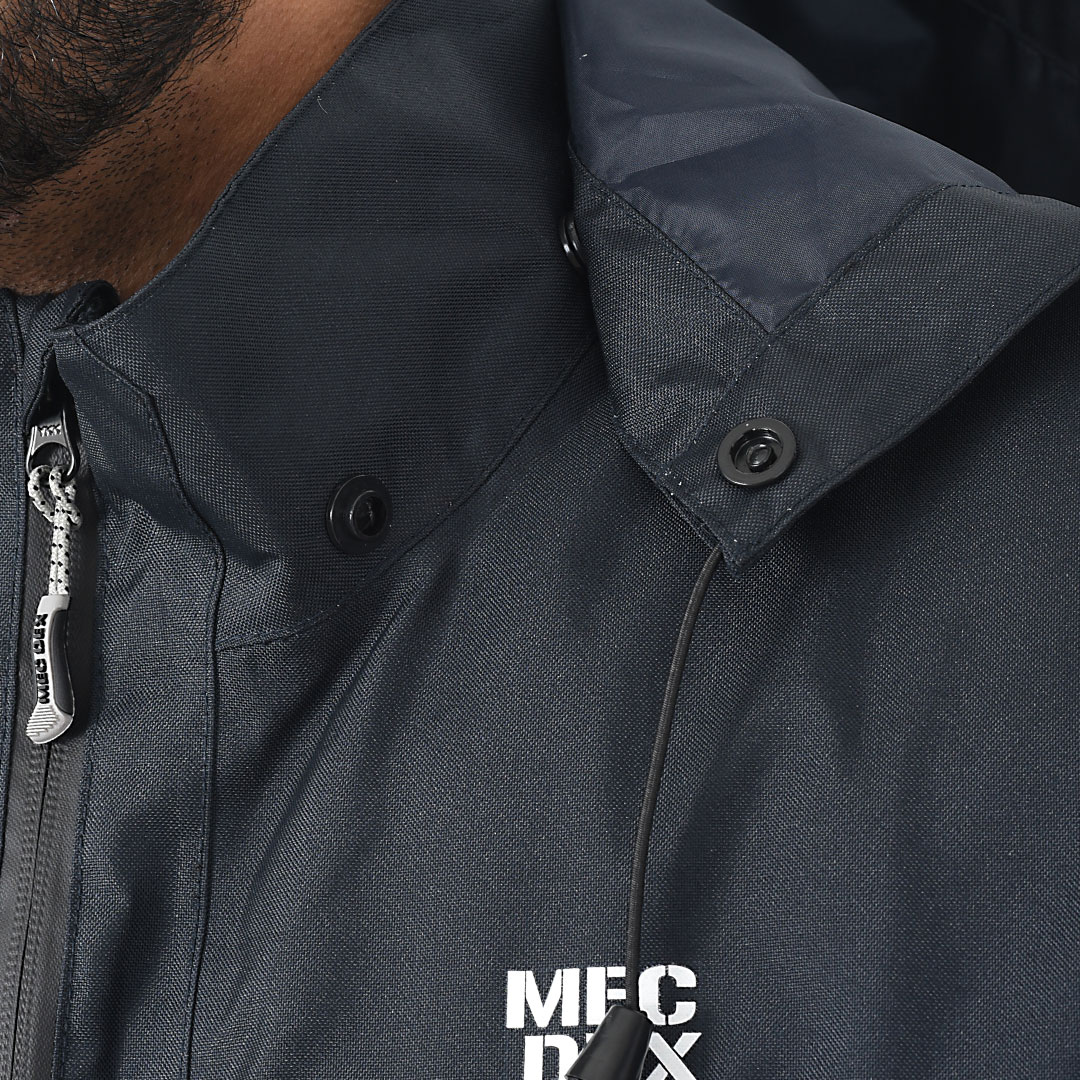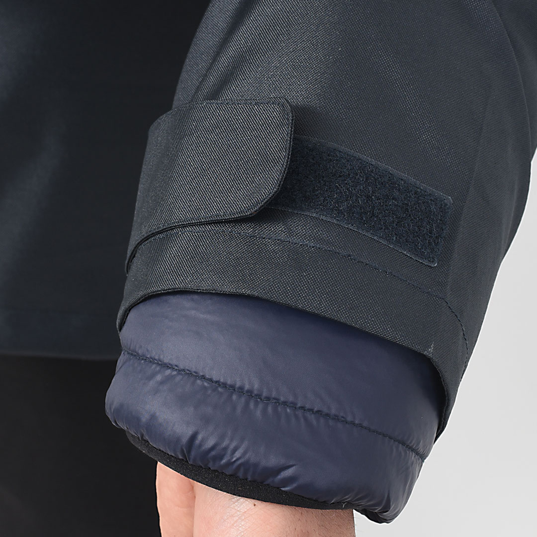 Adjustable cuffs with self-fabric loop and Velcro closure, enabling a customized fit and improved wind sealing at the wrist.