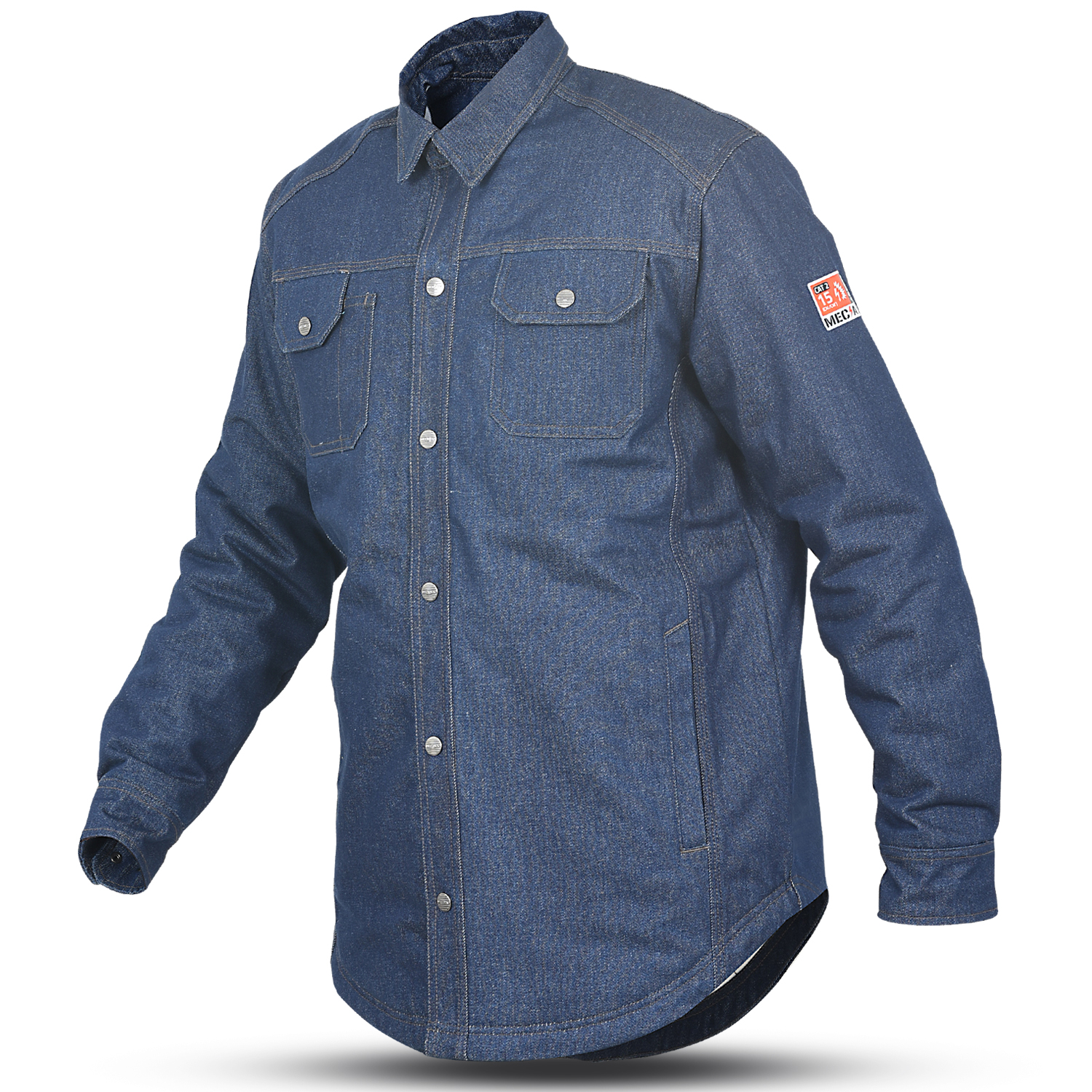 complies with NFPA 70E and NFPA 2112 standards. Featuring a collared front, snap