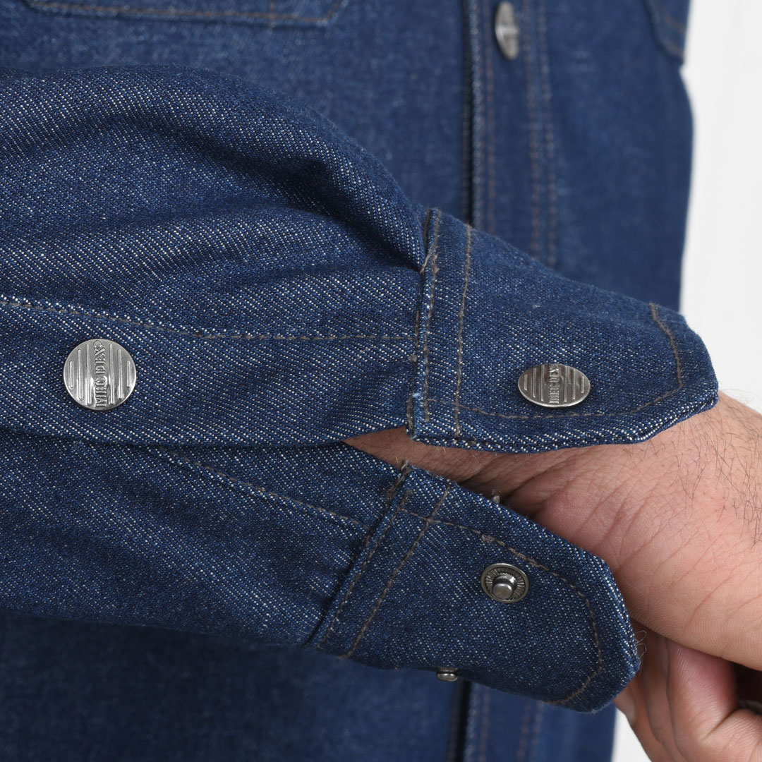The SH-FR-1443 Men’s FR Denim Shirt Jacket is a heavy-duty flame-resistant garment