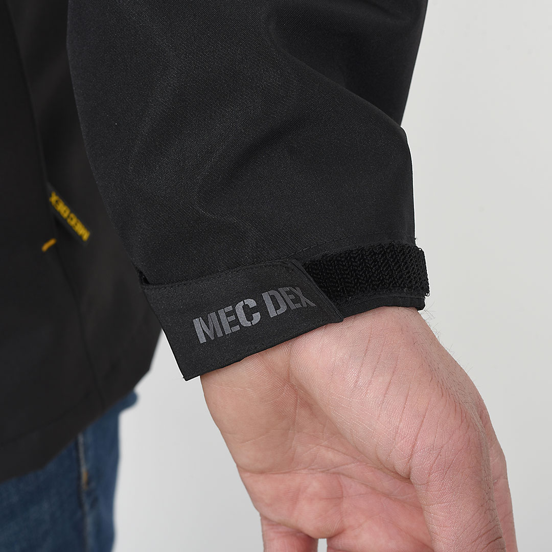 Adjustable cuffs featuring elastic, self-fabric loop, and Velcro closure for a secure fit.