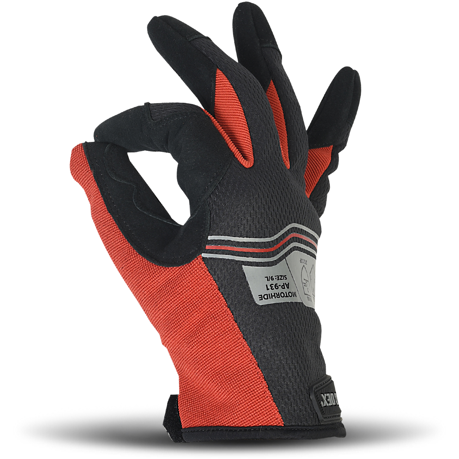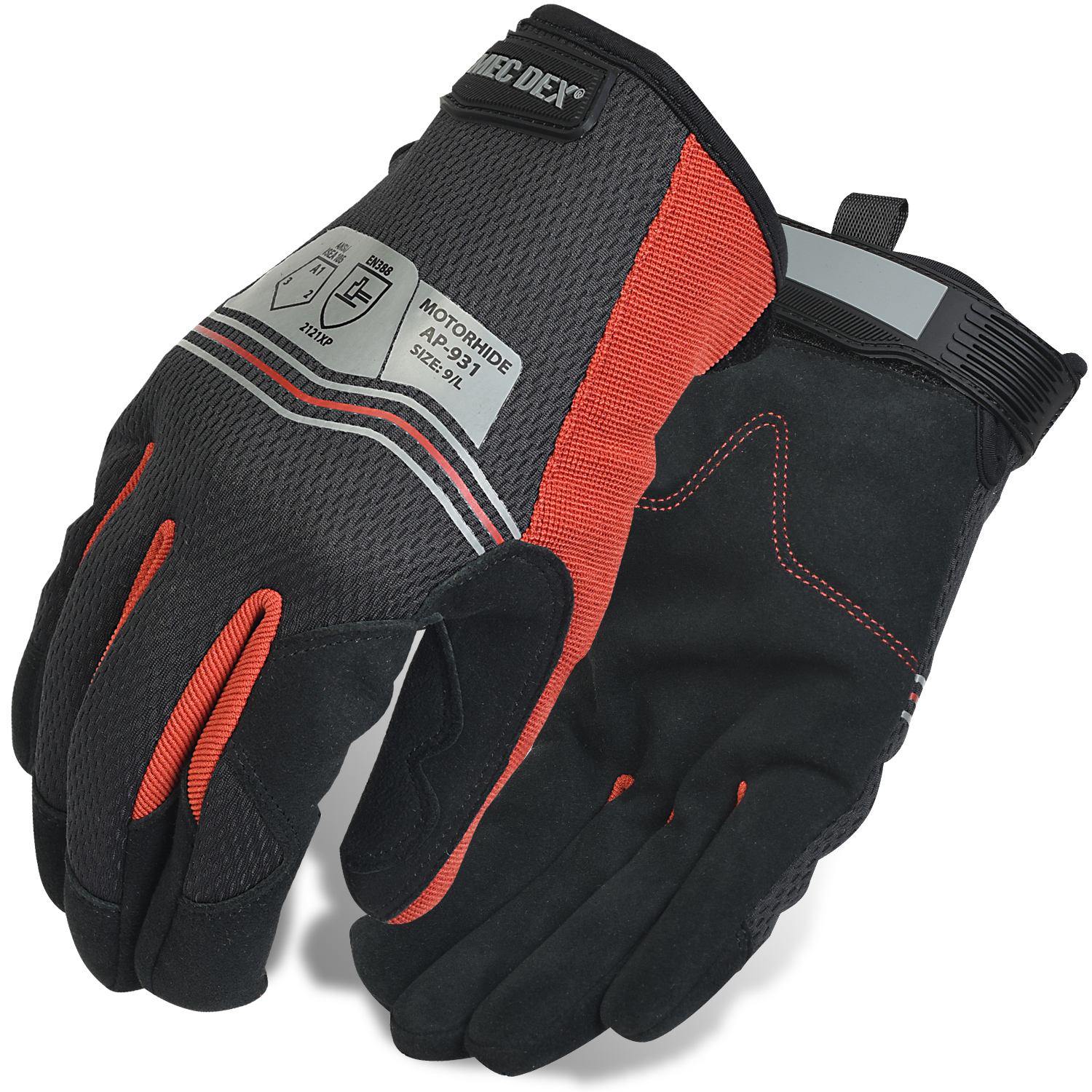 These WR reverse goatskin leather gloves deliver durable protection and dependable grip with leather palm coverage and reflective details for improved visibility. A foam-laminated spandex back maintains flexibility, while neoprene-padded palm increase comfort and impact absorption. The water-resistant palm ensures control in wet conditions, complemented by a secure hook-and-loop closure and pull tab for easy handling.
