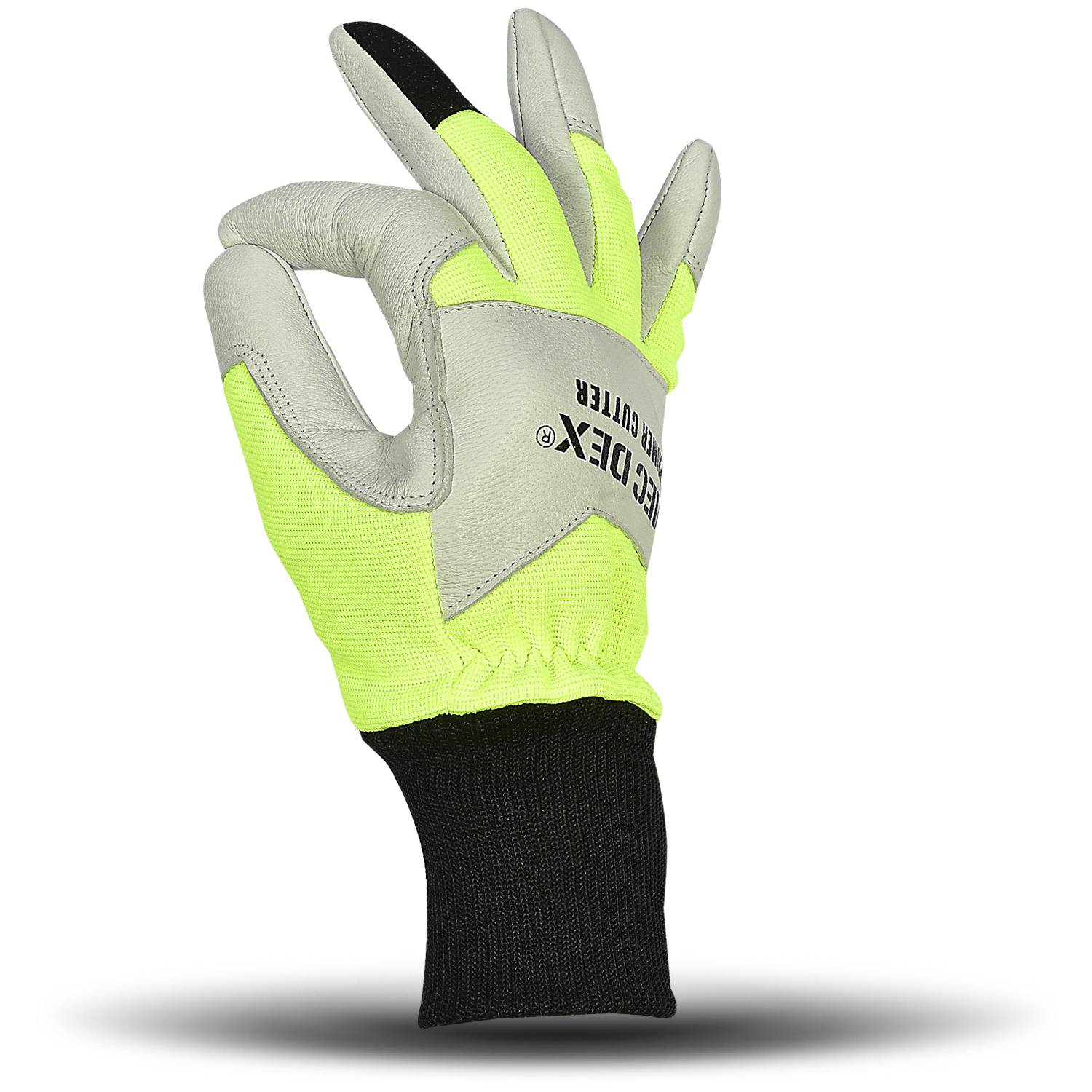These gloves feature a durable goatskin leather palm with foam padding underneath for enhanced comfort during extended use. Designed with chainsaw cut retardant fabric, they offer reliable Class Level 1 protection. The spandex fabric backing ensures excellent breathability and flexibility, while the goatskin leather knuckle provides added reinforcement. Equipped with a knitted cuff and ergonomic design, these gloves deliver a secure, comfortable fit. Reinforced nail tips increase resistance to wear and tear, and the spandex thumb back allows for greater flexibility. The electro-conductive synthetic leather on the middle finger nail tip enables easy touchscreen interaction.
