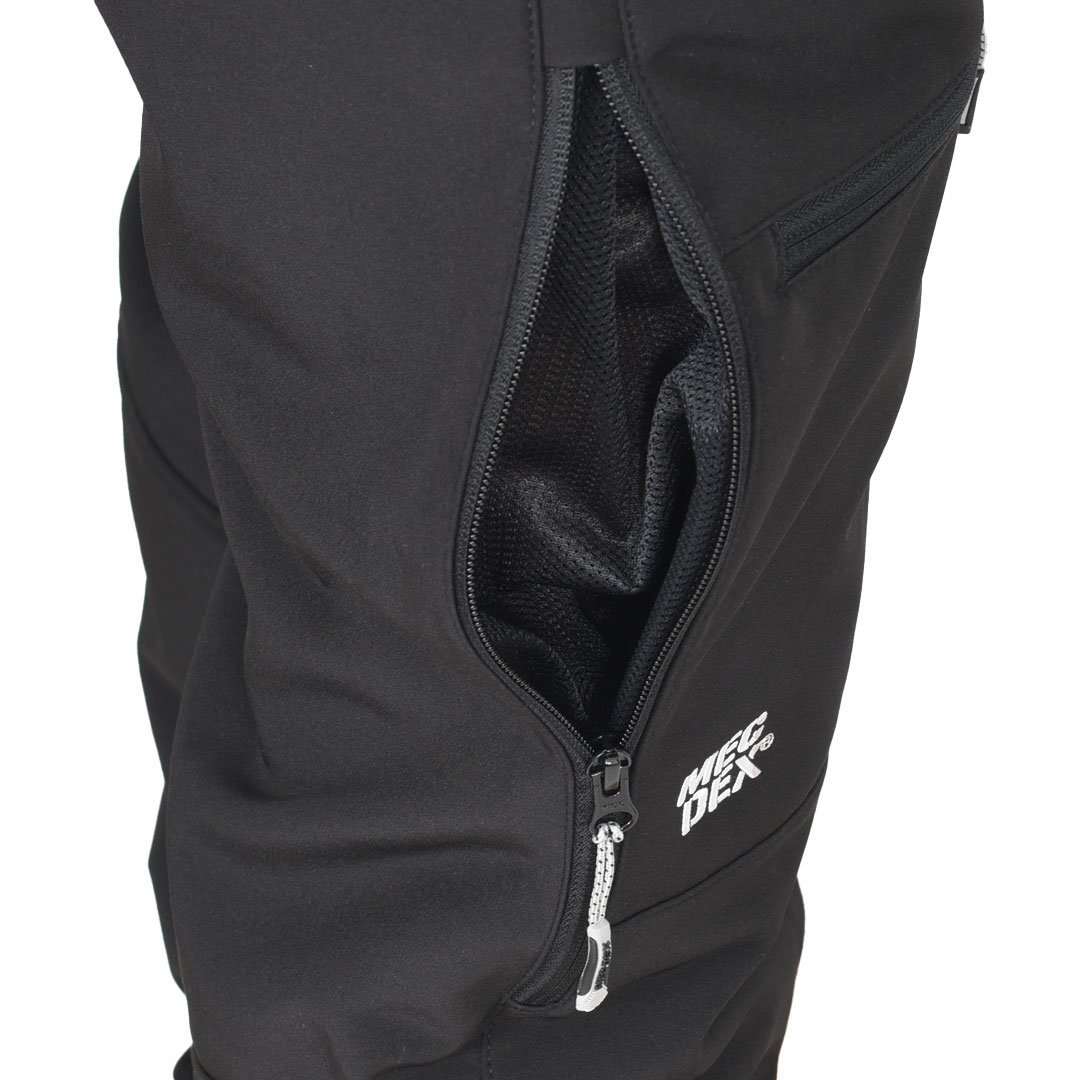 Side leg mesh vents with zippers provide