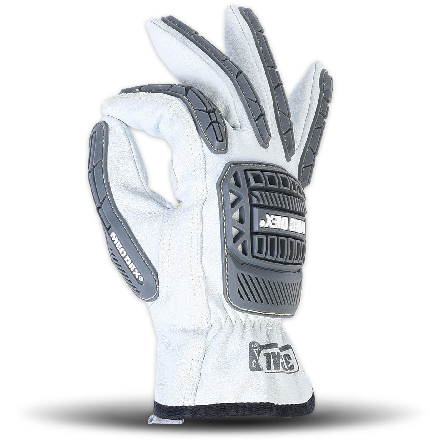 Stitched vinyl reinforcements on fingertips and knuckles pair with water-resistant goatskin leather to deliver durability in high-risk electrical and industrial settings. A Cut A5 lining ensures superior cut protection, while palm padding absorbs impact. Welted goatskin palm and Kevlar thread stitching enhance strength, comfort, and long-term reliability with a clean professional finish.