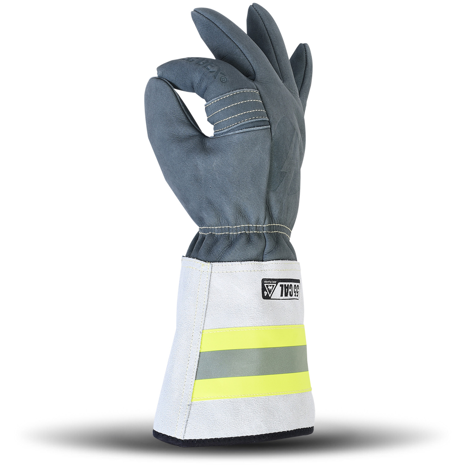 WR cowhide nubuck leather, Thinsulate™ FR120 insulation, and Nomex lining combine to deliver exceptional flame, heat, and thermal protection. A 2-inch Hi-Vis 3M reflective tape enhances visibility in low-light conditions, while Kevlar thread stitching and a reinforced welt add durability. Completed with a cowhide split leather cuff, this glove ensures dependable, heavy-duty performance in high-risk environments.